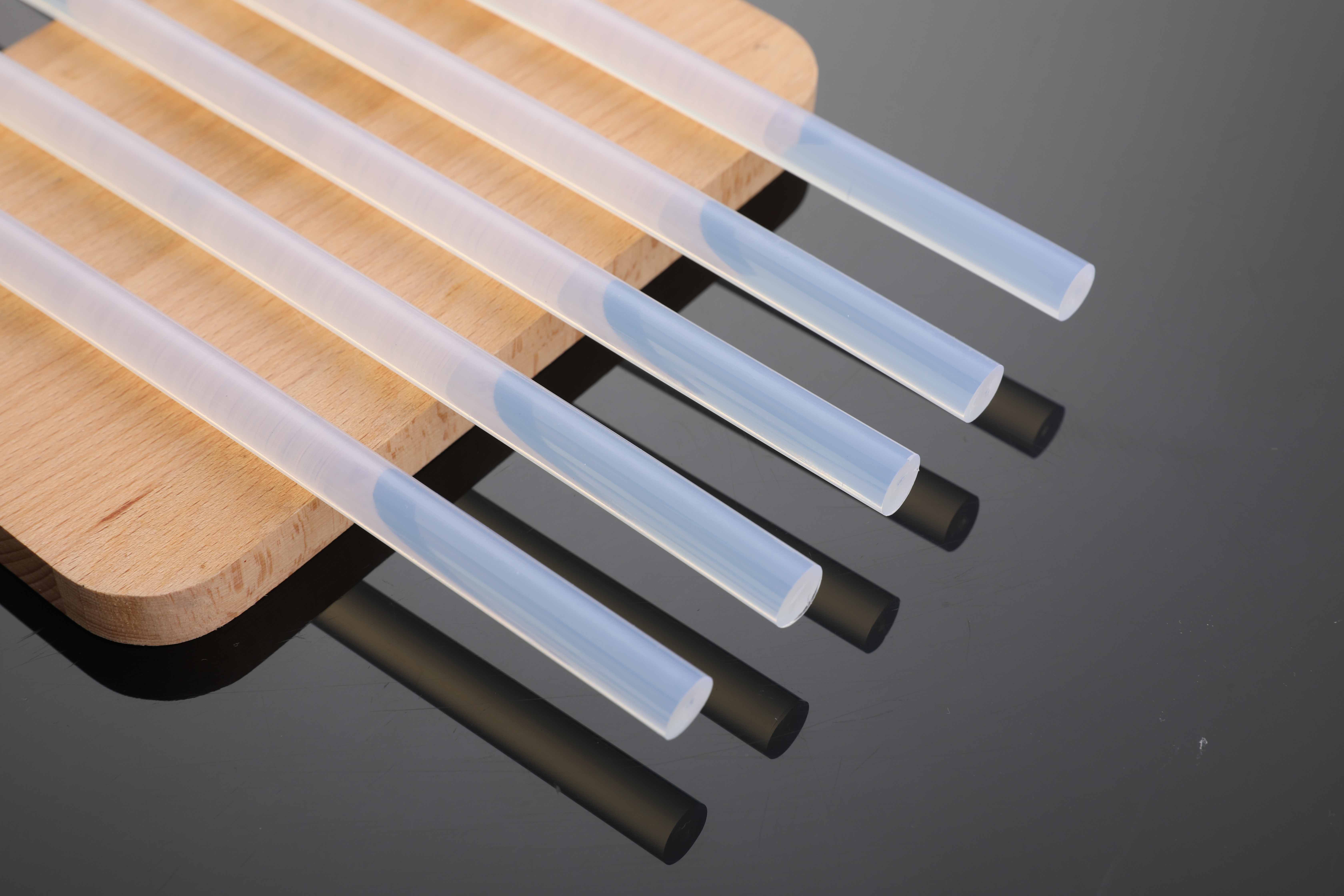 EVA熱熔膠是一種不需溶劑、不含水份、100%的固體可熔性的聚合物,在常溫下為固體,加熱熔融到一定程度變?yōu)槟芰鲃?dòng)且有一定粘性的液體粘合劑,其熔融后為淺棕色半透明體或本白色。透明熱熔膠棒應(yīng)用廣泛,可廣泛用于包裝材料,書(shū)籍裝訂,木材加工和空氣濾清器制作等諸多行業(yè),顏色融化后較淺,復(fù)合在材料表面不會(huì)特別明顯。